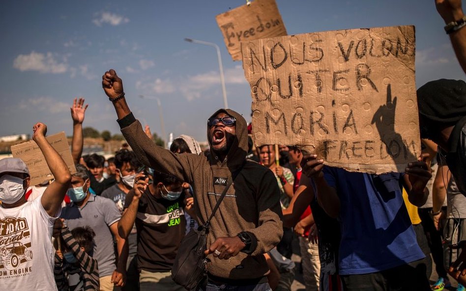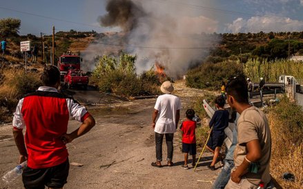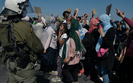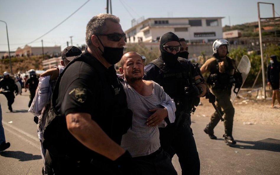 Do starcia policji i migrantów doszło w pobliżu portu w Mitylenie, gdzie dotarły setki migrantów domagający się poprawy warunków. Tysiące mieszkańców spalonego obozu koczuje pod gołym niebem lub w prowizorycznych namiotach ustawionych w pobliżu portu.