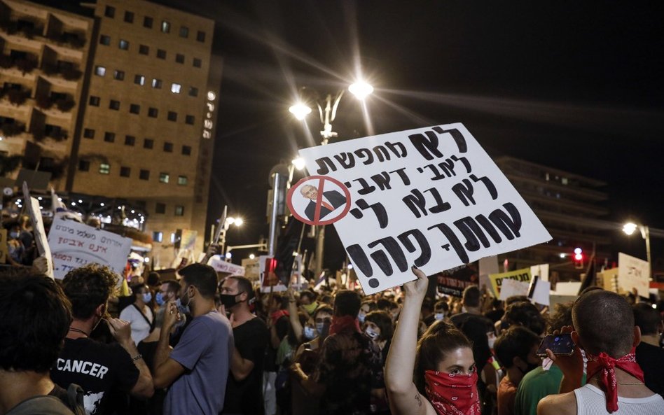 Uczestnicy protestu w Jerozolimie zgromadzili się przed siedzibą premiera Netanjahu. Wiele osób trzymało w rękach transparenty oskarżające szefa rządu o korupcję. Odnosili się w ten sposób do zarzutów, jakie w styczniu postawiono premierowi. Netanjahu zaprzecza wszystkim oskarżeniom.
