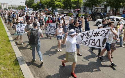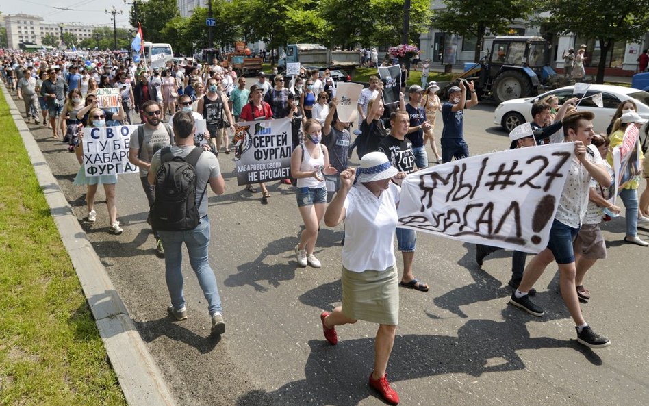 Co najmniej 10 tysięcy osób maszerowało w Chabarowsku na Dalekim Wschodzie Rosji żądając uwolnienia popularnego gubernatora zatrzymanego w ubiegłym tygodniu pod zarzutem morderstwa