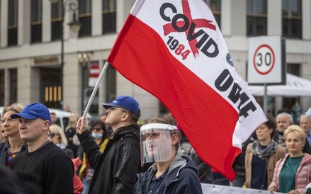 Uczestnicy przekonywali, że nie ma żadnych naukowych dowodów na istnienie pandemii koronawirusa, a wprowadzanie obostrzeń jest bezprawne.