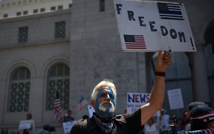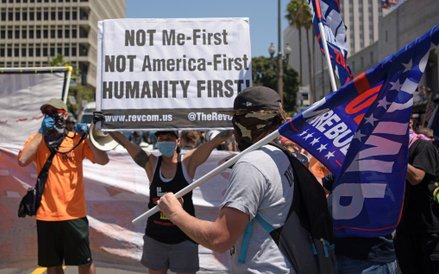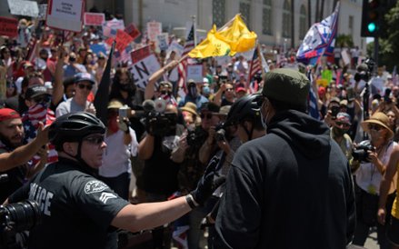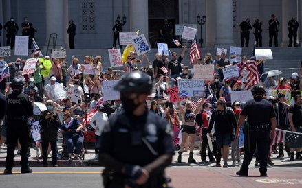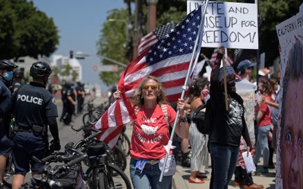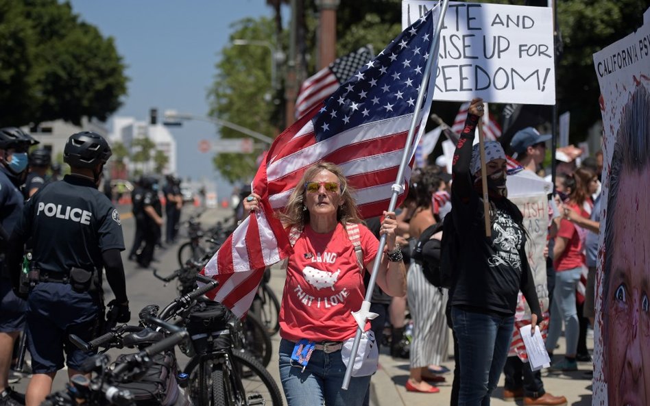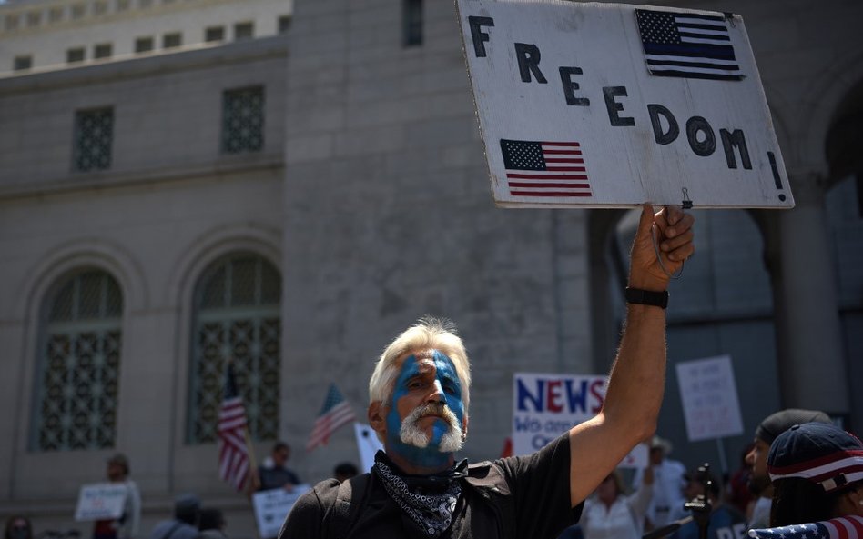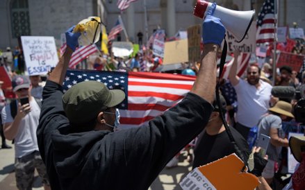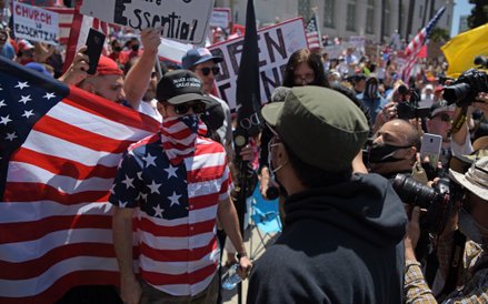 Większość protestujących skandowała hasła "Wolność" i "Otwarta Kalifornia". Uczestnicy nie mieli również zakrytych twarzy, nie przestrzegali także zasad dystansu społecznego.