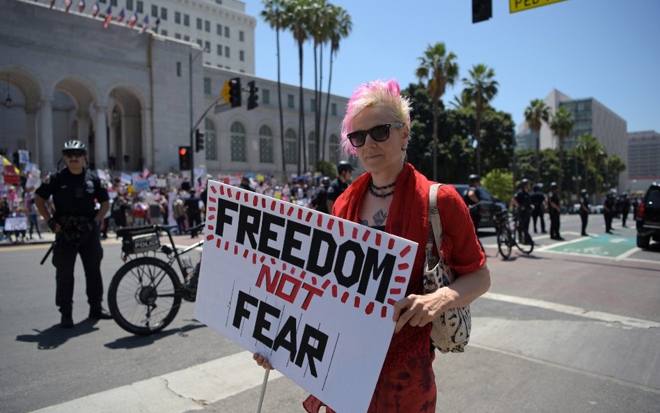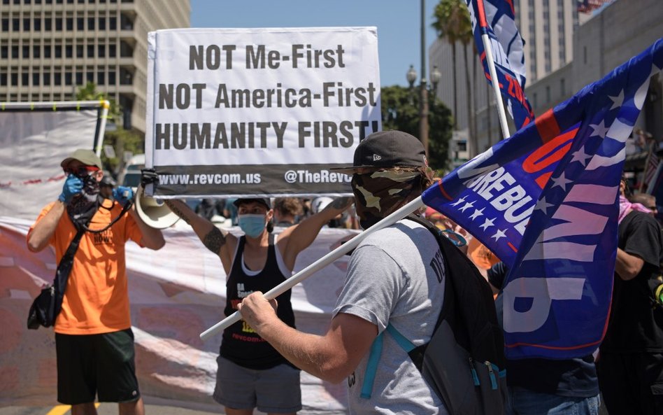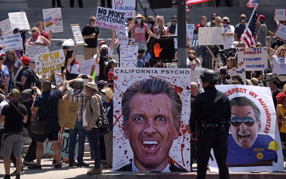 Wiele osób pojawiło się na ulicach z transparentami wyrażającymi poparcie dla Donalda Trumpa oraz krytykę gubernatora Gavina Newsoma.