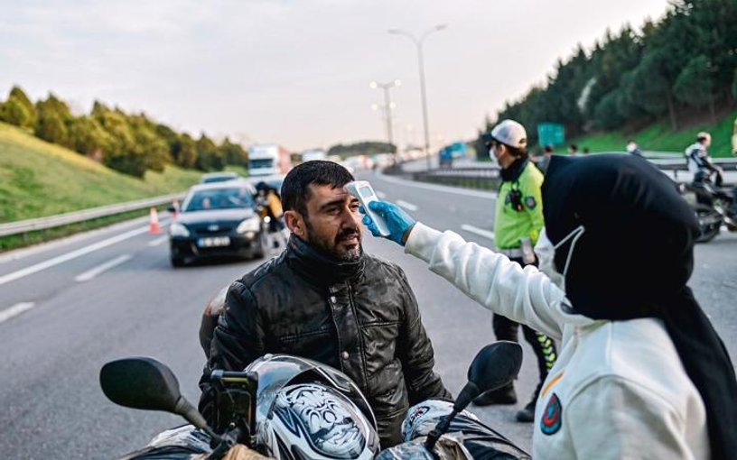 Antywirusowa kontrola temperatury na drodze wjazdowej do Stambułu, po azjatyckiej stronie tureckiej metropolii