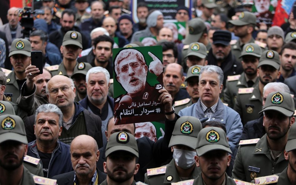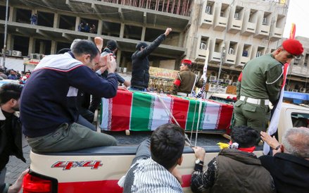 W sobotę w stolicy Iraku odbywają się uroczyści żałobne. Uczestnicy procesji skandują "Śmierć Ameryce!", oprócz podobizn zabitych, wielu trzyma portrety irańskiego przywódcy ajatollaha Chamenei. Ludzie niosą flagi Iraku i sztandary PFM.