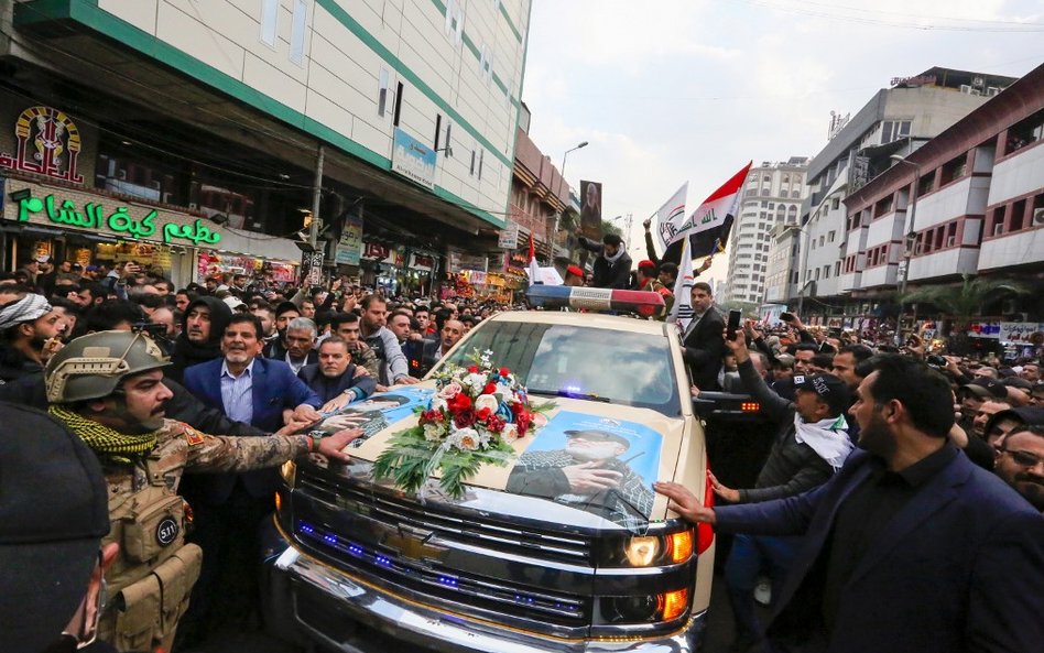 Tysiące Irakijczyków uczestniczą w Bagdadzie w pogrzebie Kasema Sulejmaniego i Abu Mahdi al-Muhandisa. Irański generał i zastępca dowódcy irackich milicji zginęli w piątek, gdy konwój, którym wyjeżdżali z lotniska w Bagdadzie, został zaatakowany przez Amerykanów.