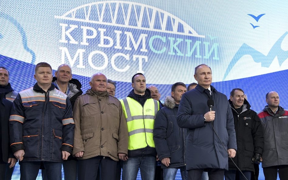 Władimir Putin nazwał wybudowany most "wspaniałym". Przeprawa ma 19 kilometrów długości. Już wcześniej otwarto pasy ruchu dla pojazdów kołowych. Także wtedy na miejscu pojawił się prezydent.