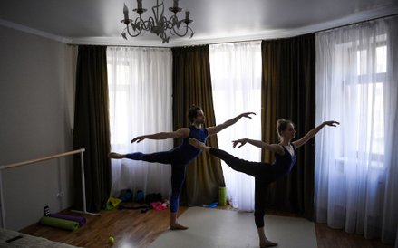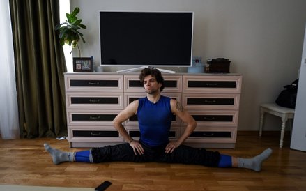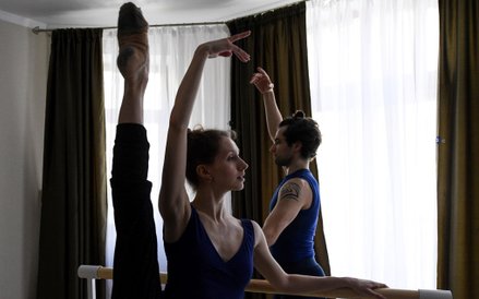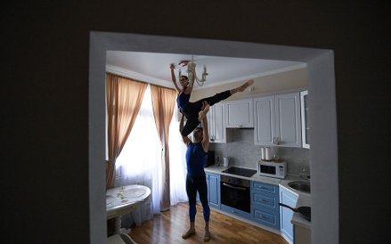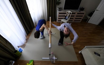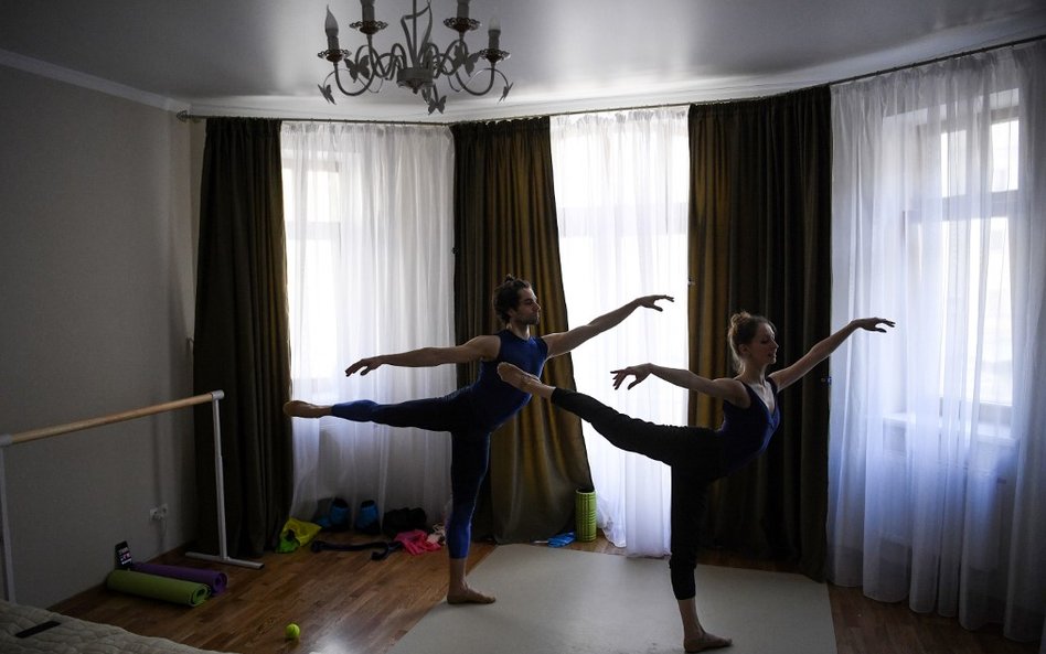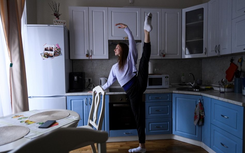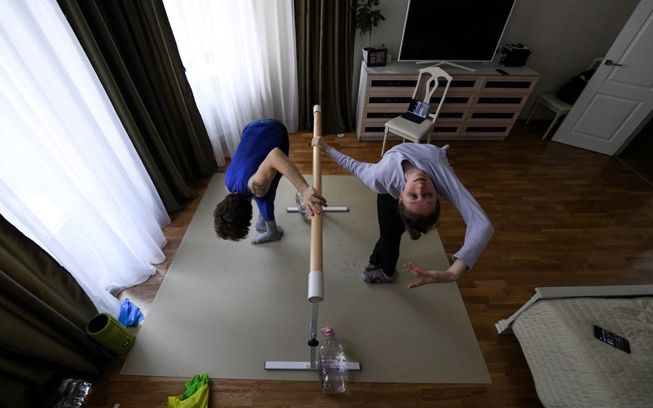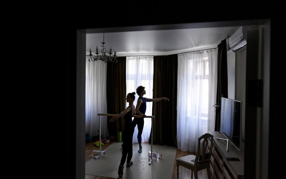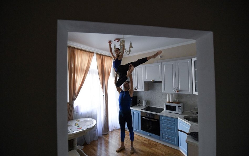 Para, od chwili zamknięcia wszystkich instytucji kulturalnych w Rosji urządziła sobie salę do ćwiczeń we własnym mieszkaniu.