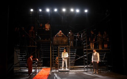 Oto pewien pisarz otrzymuje propozycję, by w rodzinnej Łodzi uczestniczyć w niezwykłym procesie sądowym. Oskarżonym jest Mordechaj Chaim Rumkowski, przewodniczący Judenratu w łódzkim getcie. Ten, o którym pisano, że zamienił getto w wydajne przedsiębiorstwo pracujące dla dobra Trzeciej Rzeszy. On sam twierdzi, że dzięki temu udało mu się uchronić łódzkich Żydów przed transportem do Auschwitz. Na świadków w procesie powołani zostali współcześni Chaima, jego współpracownicy i ofiary. Świetne dialogi, ciekawa dramaturgia. Cytaty z „Króla Leara" nadają tej opowieści wymiar niemal antyczny. Do tego dochodzi funkcjonalna scenografia Natalii Kitamikado.