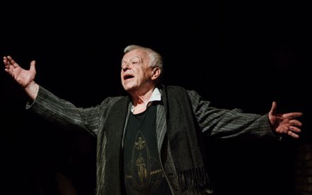 Marian Opania mówi Jackowi Cieślakowi o premierze spektaklu "Moskwa-Pietuszki", o piciu i o obsesji śmierci
