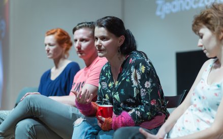 – Po wielu gorących dyskusjach – wyjaśnia Żelisławski - w naszym przedstawieniu dowodzimy, że Iwona jest świadomie bierna. Stosuje bierny opór wobec zła, które ją otacza. Staje się jakby komputerowym wirusem, który niszczy precyzyjny program, zgodnie z którym wszystko w tym księstwie-studiu się toczy.