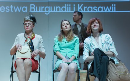 Premiera „Iwony, księżniczki Burgunda” pierwotnie planowana była w Teatrze Nowym na koniec maja, ale z uwagi na znaczenie tego tytułu opóźniono ją o kilka miesięcy. W rolę Iwony wciela się Alicja Juszkiewicz, a partnerować jej będą: Sebastian Grek (Król Ignacy), Bożena Borowska-Kropielnicka (Królowa Małgorzata), Tomasz Kocuj (Książę Filip), Antonina Choroszy (Szambelan), Martyna Zaremba-Maćkowska (Iza), Łukasz Chrzuszcz (Cyryl), Michał Kocurek (Cyprian), Edyta Łukaszewska (Ciotka), Mateusz Ławrynowicz (Inocenty) oraz Michał Grudziński i Paweł Hadyński (Loża Starszych Panów).