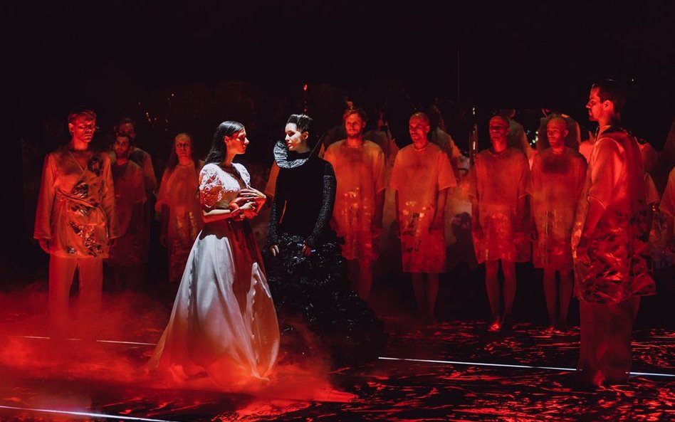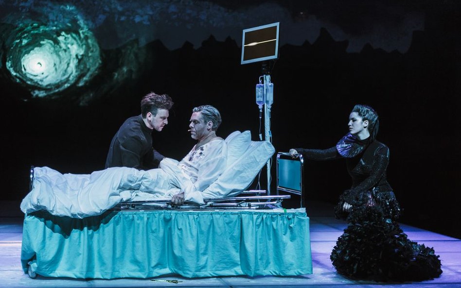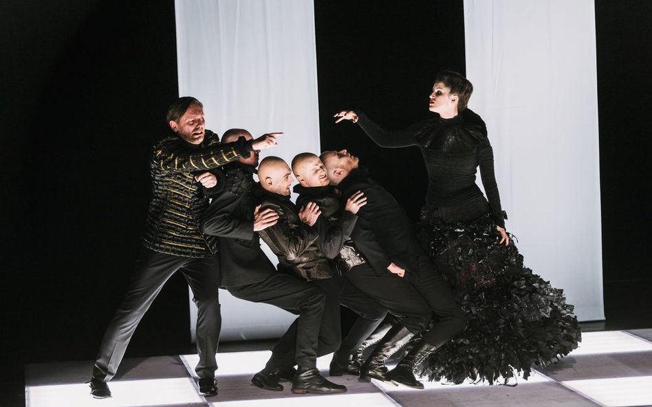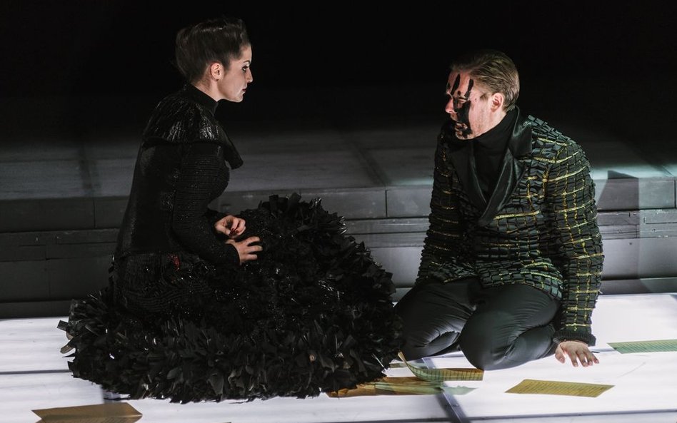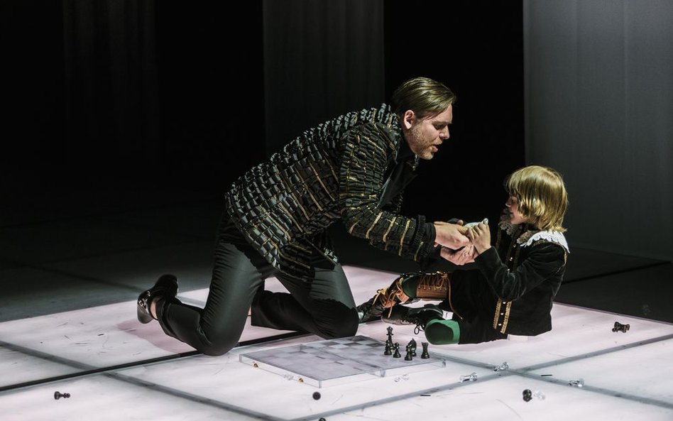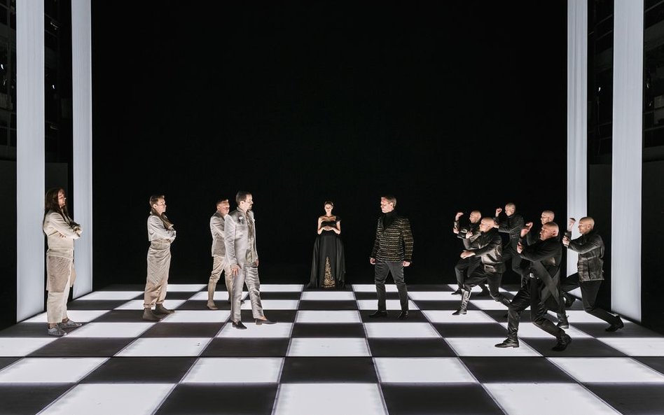 Ciekawa jest oprawa plastyczna. Pierwsza część rozgrywa się na zimnej, biało-czarnej szachownicy, a dworzanie są niczym sterowane pionki. Wysmakowana wizualnie jest scena, w której Leontes próbuje pozbyć się żony i narodzonego dziecka. Hycnar wraz ze scenograf Martyną Kander i Maciejem Igielskim korzystają tu z możliwości technicznych Narodowego.