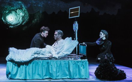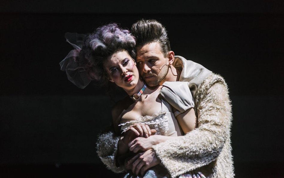 W pierwszej części, granej najbardziej serio, Oskar Hamerski, niegdysiejszy Hamlet, potwierdza klasę swego aktorstwa jako miotany zazdrością Leontes, król Sycylii. Doskonale oddaje psychikę człowieka zaślepionego miłością i traktującego swą żonę (Patrycja Soliman) niemal jak własność.