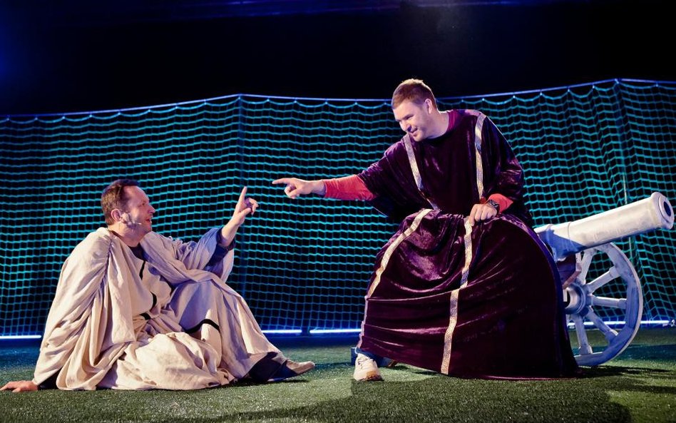 Krzysztof Materna nie ukrywał, że inspirowały go zwariowane komedie Mela Brooksa. W przewrotnej zabawie z dorobkiem Sienkiewicza oglądamy najbardziej popularnych polskich bohaterów, znanych również z kultowych filmów. Najsłynniejsze sienkiewiczowskie frazy, które stały się częścią polszczyzny, brzmią na nowo i zyskują nowy, zaskakujący kontekst. Wariacje wielu scenicznych form współtworzą kompozycje Wojciecha Kilara, sceny taneczne i piosenki Macieja Stuhra do muzyki Janusza Stokłosy.