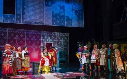 Spektakl rozpoczyna się sceną zbiorową, w której wszystkie postaci „Ożenku” ustawiają się jak do zdjęcia, a potem ruszają w szalony tan, w rytm ludowych pieśni rosyjskich, muzyki z „Traviaty” Verdiego i wypowiadanych słów – stereotypów o Rosji, takich jak: samowar, trojka, bałałajka, niedźwiedź, Czechow, kałasznikow, itd. Wschodnie dumki i czasztuszki zdają się toczyć pojedynek z zachodnioeuropejską operą, ale finalny melanż kończy się jazgotem. Jakby reżyser chciał powiedzieć, że Rosja, choć od wieków wpatrzona w kulturę zachodnią, pozostaje jednak na nią silnie impregnowana. I nieujarzmiona w pędzie ku potędze i wolności.