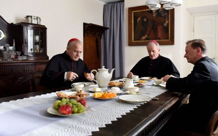 August Hlond, bohater przedstawienia, jest postacią mało znaną mimo, że sprawował godność prymasa Polski przez 22 lata. Były to czasy trudne (1926-48), a jego duszpasterska posługa stała się okazją do manipulacji przez powojenne władze Polski przedstawiającej kardynała jako pozostawiającego na łasce losu wiernych w 1939 roku, gdy wyjechał z kraju. Przywrócić dobre imię prymasowi Hlondowi postanowili twórcy Teatru TV za pomocą artystycznego widowiska. I ponieśli porażkę. Napisany i wyreżyserowany przez Pawła Woldana scenariusz znacznie lepiej nadawałby się do realizacji jako film dokumentalny niż teatr. Warto zresztą przypomnieć, że ten twórca film taki już w 2004 roku zrealizował i otrzymał za niego Grand Prix na Festiwalu Katolickich Filmów w Niepokalanowie („za wierne ukazanie postaci Księdza Prymasa Augusta Kardynała Hlonda na tle wojennego dramatu Europy i komunistycznej dyktatury; za bogato udokumentowane wyjaśnienie kontrowersji i negatywnych stereotypów dotyczących osoby Kardynała; za przywrócenie historycznej prawdy o jego posłudze duszpasterskiej i jego służbie dla Ojczyzny”). Żeby wracać do tematu trzeba mieć istotny powód choćby w postaci nowych faktów zmieniających spojrzenie na temat. Paweł Woldan raczej go nie miał – poza wpisaniem się w nurt patriotyzmu historycznego – ulubiony przez ostatni rok przez Teatr TV. W tym przypadku nie zostały jednak spełnione podstawowe wymogi gatunku – przedstawienie nie posiada dramaturgii, a jego kaleka konstrukcja opiera się na fragmentach dokumentów, listów, modlitw (trudno dokładnie ustalić, bo wyjaśnień nie zawierają materiały dostarczone przez TVP). Bezradni w starciu z tą materią okazują się aktorzy – nawet i świetny zazwyczaj Henryk Talar - jako Hlond wygłasza swoje koturnowe kwestie nie dając im życia. Osobną kwestią są sceny rozmów, w których także niemiłosiernie szeleści papier, a sceniczny żywy dialog pozostaje poza zasięgiem. Jest też zarzut o wiele poważniejszy – wkładania w usta postaci tekstów mających często charakter publicystyczny, niebezpiecznie meandrujący ku propagandzie. Ten aspekt okazał się bardziej jeszcze niż mnie irytujący księży, z którymi rozmawiałam po przedpremierowym pokazie. Dla mnie to smutne, bo marka „Teatr TV” to zobowiązanie do klasy. Nie budują jej widowiska „ku czci” – nawet w najsłuszniejszych sprawach. Teatr to miejsce rozmów o problemach, sprawach trudnych do jednoznacznego rozstrzygnięcia, łatwej oceny. Teatr TV to dodatkowo zobowiązanie artystyczne, jako że może sięgać po najważniejszych twórców w kraju. „Prymas Hlond” z takim pojmowaniem sprawy ma niewiele wspólnego. Realizacyjnie także nie da się obronić.