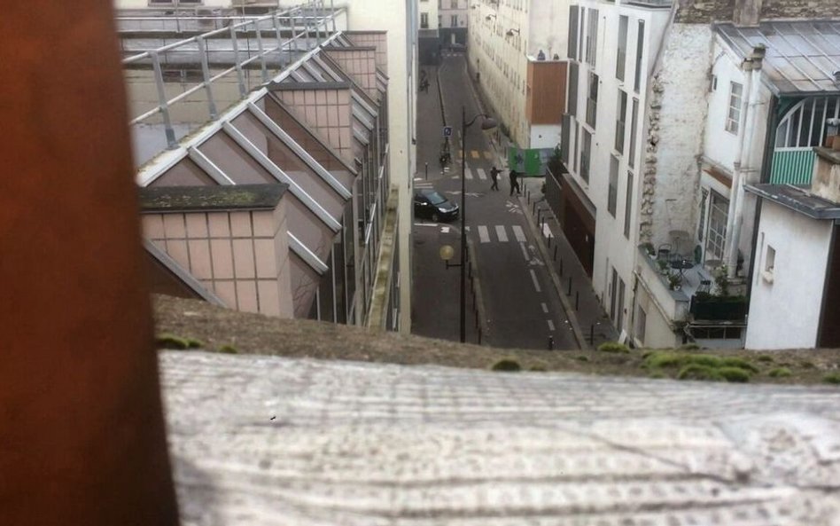 W grupie, która schroniła się na dachu budynku, jeden z obserwatorów zajścia, zaczął filmować dramatyczne wydarzenia, w tym i zastrzelenie na ulicy policjanta próbującego powstrzymać uciekających zamachowców.