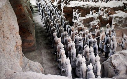 Przewodnikiem w wyprawie do najważniejszych Chin miejsc, jest brytyjski historyk sztuki Andrew- Graham Dixon. Podróż zaczyna się w prowincji Syczuan. Tysiące lat temu zamieszkiwał ją lud Szu, nazywany w dawnych kronikach Ludem Boga. Tam właśnie w 1986 roku, w czasie kopania gliny w cegielni, odsłonięte zostało nieoczekiwanie niezwykłe znalezisko. Ukazały się dwa doły pełne potłuczonych artefaktów z brązu, jadeitu i złota. Wydobyto prawie dwa tysiące przedmiotów świadczących o znajomości przez autorów sztuki obróbki brązu i zamiłowaniu do niesamowitości. Były to skarby zaginionego starożytnego miasta. Archeolodzy składali je przez kolejnych 8 lat. Złożyli m.in. rzeźbę – wizerunek sprzed trzech tysięcy lat, nieprzypominający dotychczas znanych – rodzaj ogromnej maski z brązu z dwoma długimi palami w miejscach oczu i zagadkowym uśmiechem. Odkrytych zostało także kilkadziesiąt mniejszych masek, sprawiających wrażenie, jakby bacznie przyglądały się patrzącym na nie. Widzowie zobaczą także wielkie drzewo z brązu z ptakami, wielkoskalową rzeźbę figuralną – jedyną znaną z tego okresu. Graham-Dixon odkryje także pochodzenie kaligrafii, podstawowej formy chińskiej sztuki wyjaśniając m.in., że w znakach przechowujących symbole, zawarte są wartości, wierzenia i poglądy. Najstarsze świadectwa pisma chińskiego zachowały się nad Żółtą Rzeką 1200 lat przed naszą erą – na kościach wróżebnych wykonanych z pancerzy żółwi - będzie można zobaczyć, jak wyglądają i usłyszeć, co znaczą.