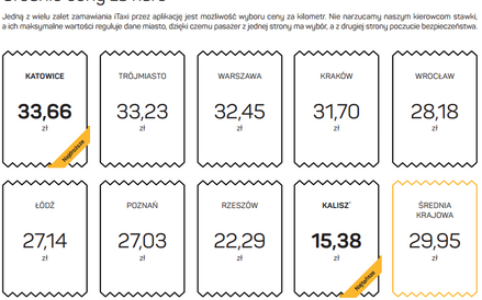Średnia cena za kurs w kraju to niemal 30 zł. Najwięcej wychodzi w Katowicach (33,66 zł), a najmniej w Kaliszu (15,38 zł).