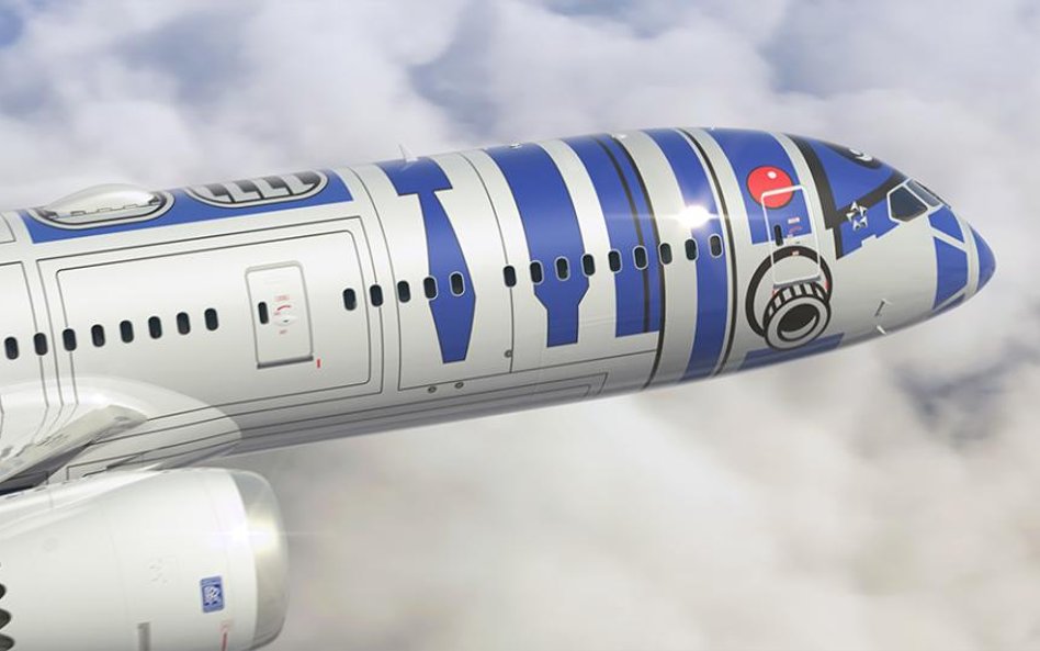 Japońskie linie lotnicze All Nippon Airways (ANA) przemalowały swojego Dreamlinera 787-9 tak, by stał się droidem R2-D2. To chyba najbardziej widowiskowa reklama najnowszej części "Gwiezdnych Wojen".