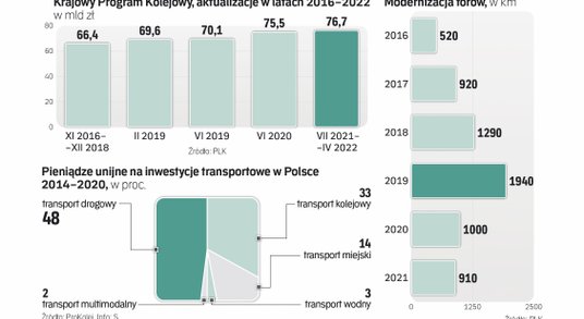 Byłby to dla kolei czarny scenariusz, bo na finansowaniu krajowym opiera się jedynie program „Kolej+”, mający dla rozbudowy infrastruktury kolejowej znaczenie tylko uzupełniające. – Tymczasem w przypadku dużych inwestycji prowadzonych przez PLK, także realizowanych wspólnie z samorządami w ramach regionalnych programów operacyjnych, nic nie zdziałamy bez unijnego dofinansowania – dodaje Furgalski.