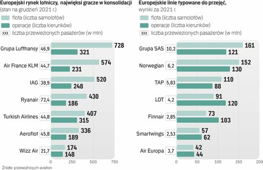 Charakterystyką branży lotniczej na naszym kontynencie jest istnienie trzech dużych grup – Lufthansy, Air France-KLM oraz IAG, gdzie najsilniejsze są British Airways oraz wielu przewoźników średniej wielkości, linii takich jak SAS, LOT, Norwegian, Tarom, Agean, Air Baltic, Finnair, TAP i powstałej z upadłej Alitalii linii ITA. Większość z nich raczej wcześniej niż później dołączy do lotniczych potęg.