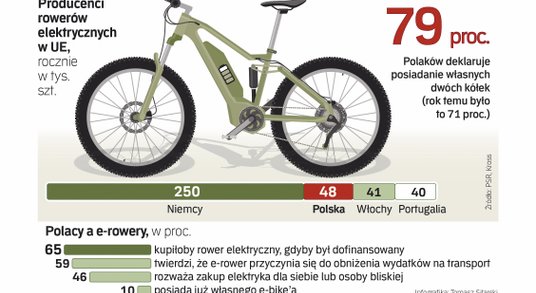 Choć jesteśmy europejską potęgą w produkcji rowerów (Polska jest obecnie czwartym producentem w UE), a w kraju powstaje również coraz więcej fabryk e-rowerów (według niektórych statystyk jesteśmy nawet drugim graczem w UE w tym segmencie), to potencjał ten nie przekłada się na skalę użytkowania tzw. e-bike’ów – ich udział to obecnie ok. 6 proc. Pod tym względem nasz kraj to wciąż europejski ogon. We Francji co czwarty jednoślad trafiający na rynek to pojazd wspomagany przez akumulator, z kolei w Niemczech aż 45 proc. sprzedawanych rowerów stanowią te elektryczne. Prognozy wskazują jednak, że i u nas w ciągu kilku lat nastąpi boom, a popyt sięgnie nawet 28 proc. Eksperci nie mają wątpliwości, że napędem mogłyby być rządowe dopłaty do zakupu takich dwóch kółek.