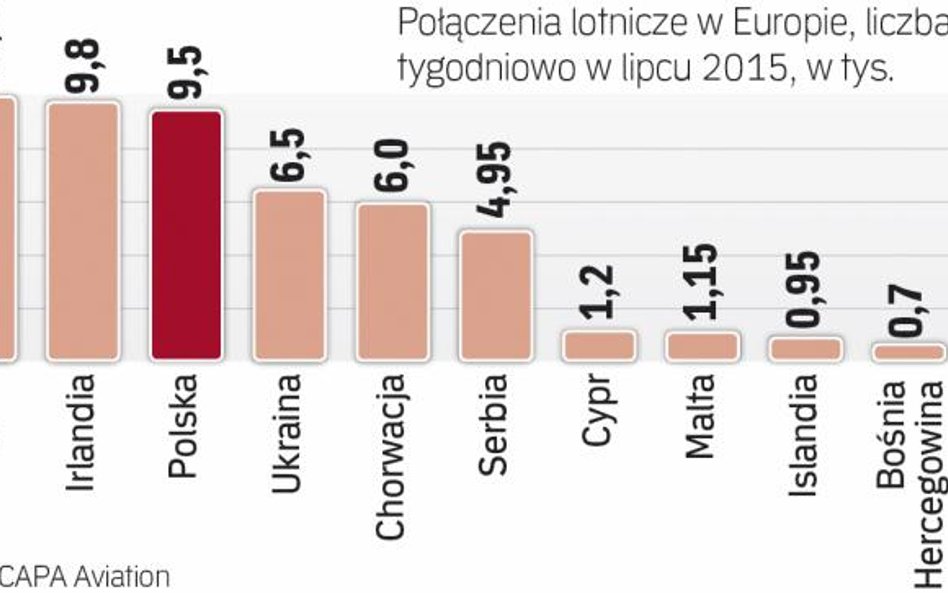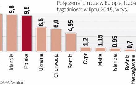 Z polskich lotnisk startuje prawie 9 tys. samolotów tygodniowo – wynika z danych Centre for Aviation (CAPA), najpoważniejszej firmy analitycznej rynku lotniczego. Dla porównania, z najlepiej skomunikowanego kraju, jakim są Niemcy, startuje ich dziesięciokrotnie więcej. Za Niemcami są: Wielka Brytania, Francja, Włochy, Hiszpania i Turcja.