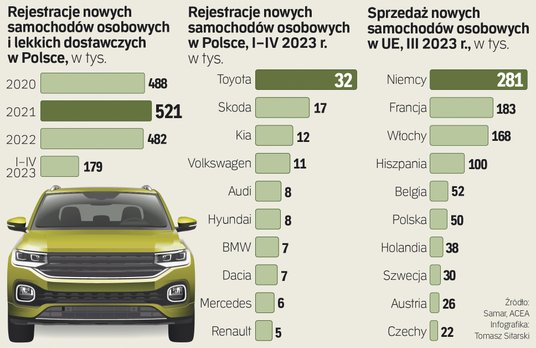 Rabatów należało się spodziewać, bo polski rynek nowych samochodów jest słaby i nieprędko się wzmocni. Przy pogarszającej się sytuacji gospodarczej i utrzymującej się wysokiej inflacji dilerom trudno będzie osiągnąć znaczące wzrosty sprzedaży. Choć w kwietniu 2023 r. zarejestrowano 35,5 tys. nowych samochodów osobowych, to poprawa względem tego samego miesiąca ubiegłego roku jest niespełna 2-proc. Z kolei w porównaniu do kwietnia sprzed pandemii rejestracje nowych aut osobowych notują 23-proc. spadek.