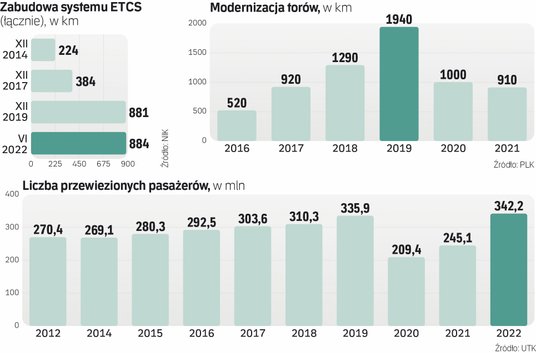 Zarządzająca infrastrukturą spółka PKP Polskie Linie Kolejowe (PLK), która miała zabudować system łączności GSM-R na około 14 tys. km linii, nie zainstalowała go na ani jednym kilometrze – podaje Izba w wynikach kontroli. Natomiast system ETCS, obejmujący ruch pociągów w kontrolowanym okresie, zainstalowano jedynie na 500 km torów, czyli jednej czwartej tego, co zaplanowano w krajowym programie kolejowym na rok 2023. Jakby tego było mało, rada nadzorcza PLK uznała, że cel związany z uzyskaniem założonych parametrów sprawności sieci GSM-R został zrealizowany. I zarekomendowała wypłacenie z tego tytułu premii dla zarządu PLK – podaje NIK w raporcie.