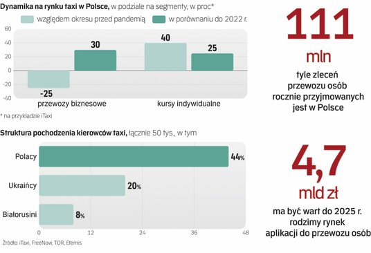 Wśród wiodących operatorów flotowych w Polsce, współpracujących m.in. z Uberem czy FreeNow, jest firma Eternis. Jak wskazuje jej prezes Kamil Leszczyński, w swoich szeregach ma wielu taksówkarzy, którzy po długoletniej współpracy z korporacjami zdecydowali się na pracę dla platform. Według niego kierowcy zmieniają barwy głównie ze względu na niższe koszty prowadzenia działalności, ale wielu z nich docenia też większe możliwości zarobkowe i swobodę działania. Co ciekawe, broni przed gigantami nie składają wcale tradycyjne korporacje. Przykładem jest choćby Sawa Taxi, która poszła śladem rywali z aplikacji i nawiązała właśnie partnerstwo z Eternisem. Eksperci spodziewają się to może być początkiem nowego trendu, co oznacza, że większe korporacje postawią się nowym graczom i same przystąpią do kontrofensywy.
