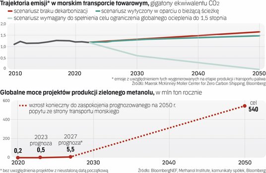Znajdującą się wciąż na bardzo wczesnym etapie transformację transportu morskiego dynamizuje rozpoczęte wprowadzanie opłat za emisje. Zgodnie z celem wyznaczonym przez Międzynarodową Organizację Morską przy ONZ (IMO) paliwa zero- lub niskoemisyjne odpowiadać mają do 2030 r. za 5–10 proc. zużywanej w przewozach energii.
