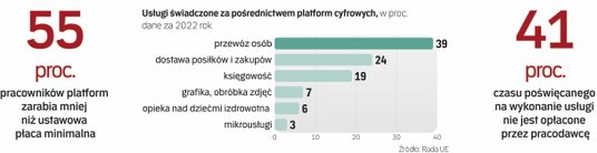 We współczesnej gospodarce platformy stały się bardzo ważnym pracodawcą i ich znaczenie szybko rośnie. Według danych za 2022 rok zatrudniały 28,3 mln osób, a szacuje się, że do 2050 roku będzie ich 43 mln. Tymczasem w zakładach produkcji przemysłowej pracuje 28 mln osób. Obecnie platformy zatrudniają głównie taksówkarzy, np. Uber i Bolt (39 proc.), dostawców posiłków czy zakupów, np. Deliveroo, Glovo i Just Eat (24 proc.) i dostawców drobnych usług dla domu, jak sprzątanie czy naprawy, np. Taskrabbit (19 proc.). Ala za pośrednictwem platform dostarczane są też inne usługi, jak np. księgowość, opieka nad dziećmi, grafika komputerowa czy obróbka zdjęć, np. poprzez platformę Fiverr.