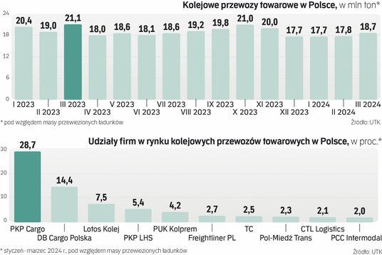 Spośród giełdowych grup istotnym uczestnikiem polskiego rynku transportowego jest Pol-Miedź Trans, firma kontrolowana przez KGHM. Koncern podaje, że w podstawowym obszarze realizowanych przez niego przewozów, czyli kruszyw, nie odnotował istotnego wpływu sytuacji zewnętrznej na prowadzoną działalność. Potwierdza jednak wystąpienie spadków w zakresie transportu węgla i kontenerów. „Spodziewamy się wzrostu przewozów towarowych wraz z uruchomieniem wszystkich znaczących inwestycji kolejowo-drogowych w Polsce. Wszystko będzie zależało od tego, kiedy dane inwestycje otrzymają środki finansowe” – twierdzi departament komunikacji KGHM. Na podstawie otrzymywanych aktualnie zapytań ofertowych zakłada, że dopiero 2025 r. powinien być okresem wzrostów przewozów towarowych.