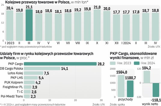 Kondycja PKP Cargo jest coraz gorsza, a działania naprawcze zarządu napotykają opór związków. Chodzi m.in. o program kierowania do 30 proc. pracowników na tzw. nieświadczenie pracy przez okres 12 miesięcy. Według związków przy jego realizacji nie stosuje się żadnych kryteriów dotyczących nasycenia pracą czy wielkości zatrudnienia w poszczególnych lokalizacjach i jednostkach organizacyjnych.