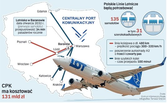 Zakończenie budowy nowego lotniska zaplanowano na 2031 r. – To realny termin, w którym oddana zostanie również część kolejowa: linia z Warszawy do Łodzi – powiedział pełnomocnik rządu ds. CPK Maciej Lasek. W tym czasie zostanie poszerzona autostrada A2 pomiędzy Warszawą a Łodzią, która teraz kompletnie się zapycha. Do obecnych dwóch pasów ruchu w każdą stronę zostaną dobudowane jeszcze po dwa, w rezultacie na tym odcinku będziemy jeździć czterema pasami w obu kierunkach. Jeden z naszych rozmówców z PO zwraca uwagę, że w retoryce premiera w sprawie lotniska wróciły autostrady, czyli jeden z symboli rządów z lat 2007–2014.
