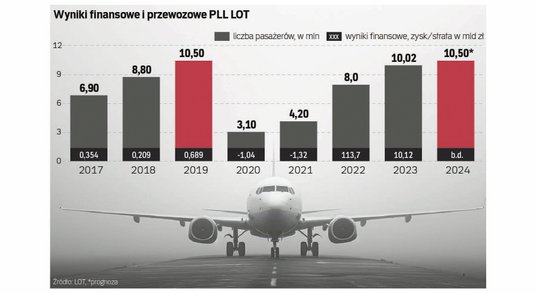 Przy tym wyniki finansowe przedsiębiorstwa są stabilne i nie ma tutaj żadnych niebezpieczeństw. Wiadomo, że tegoroczny wynik finansowy nie będzie tak spektakularny, jak ponad miliard zysku w 2023 roku, chociaż pozwoli bez napięć spłacić kolejną ratę pożyczki, jaką LOT uzyskał w czasie pandemii w 2020 roku. Kwota 1,8 mld złotych została rozłożona na cztery raty, każda po 450 mln zł.