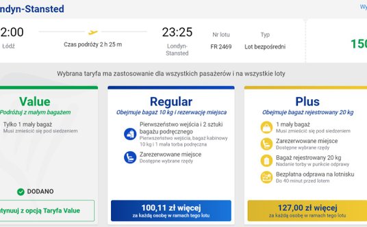 Tanie linie lotnicze są coraz tańsze tylko z deklaracji. Ryanair właśnie dokonuje zmian w cenniku, która nie spodoba się tym klientom, którzy byli gotowi płacić za najdroższe opcje taryfowe przewoźnika. Taryfa Plus, bo o niej mowa, zawierała dotychczas 2 sztuki bagażu podręcznego (w tym jeden duży) i pierwszeństwo wejścia na pokład. Taka informacja wciąż jest w opisie opcji na stronie przewoźnika.
