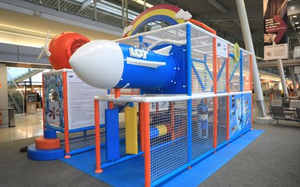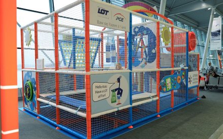 Dwupoziomowy plac zabaw z akcentami nawiązującymi do lotnictwa i energetyki (plac powstał dzięki współpracy Lotniska Chopina, PLL LOT i PGE Polskiej Grupy Energetycznej) będzie dostępny dla wszystkich dzieci. W oczekiwaniu na lot będą mogły zjechać ze zjeżdżalni nawiązującej kształtem do Dreamlinera. Znalazło się nawet miejsce dla „elektrowni” wiatrowej. Pierwszy plac zabaw znalazł swoje miejsce na poziomie odlotów między bramkami 38/39 (czyli w strefie Schengen). W lutym zostaną otwarte kolejne – jeden w strefie dla podróżujących w obrębie strefy Schengen, a drugi w strefie Non-Schengen.