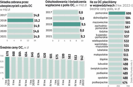 Polska Izba Ubezpieczeń, która niedawno podsumowała 2021 r. na naszym rynku ubezpieczeniowym, zwróciła uwagę, że odszkodowania i świadczenia z obowiązkowych komunikacyjnych polis OC sięgnęły kwoty 9,3 mld zł i były o 3,2 proc. większe niż przed rokiem. Jednocześnie pomimo wzrostu kosztów szkód spadała średnia składka za takie polisy. W 2021 r. wyniosła ona średnio 488 zł, o 2 proc. mniej niż rok wcześniej. W tym czasie średnia szkoda likwidowana z OC wzrosła o 3,8 proc., do 8484 zł. Ubezpieczyciele od dawna mówią, że taka sytuacja nie może trwać w nieskończoność, bo to zagraża rentowności tego sektora rynku.