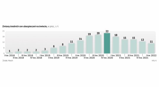 Ceny ubezpieczeń na świecie wzrosły w ciągu trzech pierwszych miesięcy tego roku o 11 proc. – wynika z najnowszego raportu Marsh Global Insurance Market Index. Był to tym samym już 18 kwartał z rzędu, w którym polisy drożały. Tempo tych wzrostów nieco jednak hamuje, a autorzy raportu oceniają je nawet jako umiarkowane.