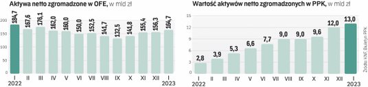Miniony rok był trudny dla oszczędzających długoterminowo w programach takich jak otwarte fundusze emerytalne czy pracownicze plany kapitałowe. Wybuch wojny w Ukrainie, hamująca gospodarka światowa, duża niepewność co do rozwoju sytuacji na świecie, wreszcie wysoka inflacja powodowały poważne zawirowania na rynkach finansowych, negatywnie przekładając się na wartość gromadzonych oszczędności. Koniec zeszłego i początek tego roku pchnęły jednak w górę giełdowe indeksy. W ślad za nimi zaczęła rosnąć wartość aktywów zgromadzonych zarówno w OFE, jak i w PPK.