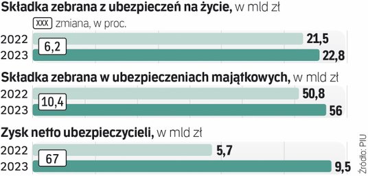 W minionym roku zawarliśmy też 79,3 mln polis majątkowych. Największa część odszkodowań w ubezpieczeniach majątkowych przypada na ubezpieczenia komunikacyjne. Odszkodowania i świadczenia z obowiązkowego OC komunikacyjnego wyniosły w 2023 r. prawie 10,7 mld zł i były o 8,2 proc. większe niż przed rokiem. Jednocześnie pomimo wzrostu kosztów szkód średnia składka w ubezpieczeniu OC komunikacyjnym wzrosła jedynie o 2,9 proc. i wyniosła 513 zł. Wartość średniej szkody z OC posiadaczy pojazdów mechanicznych wzrosła o 11,4 proc., do 9 980 zł.