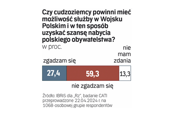 IBRiS zadał pytanie na zlecenie „Rzeczpospolitej”, czy w polskiej armii powinni służyć cudzoziemcy, co pomogłoby im zdobyć polskie obywatelstwo. Takie rozwiązania coraz częściej przyjmują siły zbrojne innych krajów NATO, obcokrajowcy służą też w Siłach Zbrojnych Ukrainy, m.in. Białorusini, Rosjanie, Polacy, Brytyjczycy.