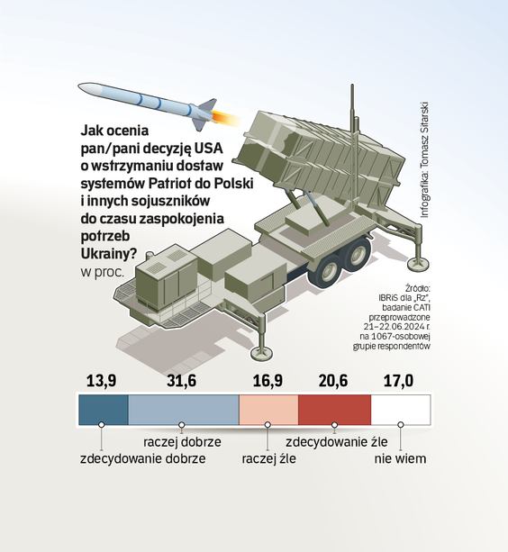Z sondażu przeprowadzonego przez IBRiS na zlecenie „Rzeczpospolitej” wynika, że badani w większym stopniu akceptują, niż krytykują decyzje władz USA, aby czasowo zostały wstrzymane dostawy nowych systemów Patriot, także dla Polski i w pierwszej kolejności trafiały one na Ukrainę, która opiera się rosyjskiej agresji.