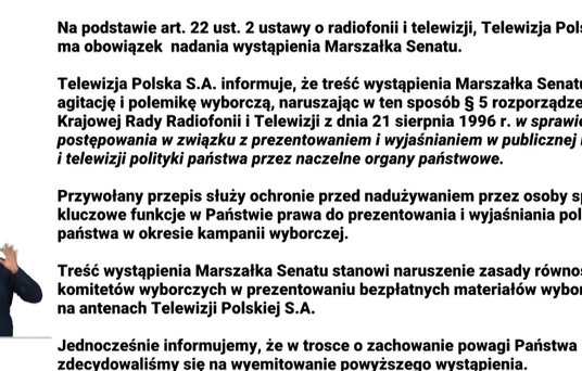 "Już w najbliższą niedzielę jako obywatele Rzeczypospolitej wspólnie zdecydujemy o przyszłości naszej ukochanej Ojczyzny. Głęboko wierzę, że każdy z nas chce dla Polski wszystkiego, co najlepsze. Chcemy, by była ona dobrym i przyjaznym domem dla nas, dla naszych dzieci i wnuków. Krajem zasobnym, wolnym i dumnym, gdzie każda Polka i każdy Polak cieszą się wzajemnym szacunkiem, wolnością i osobistym szczęściem. Gdy za naszą wschodnią granicą toczy się wojna, a na świecie wciąż wybuchają nowe konflikty, chcemy, by Polska była bezpieczna" - mówił w orędziu marszałek Senatu Tomasz Grodzki.