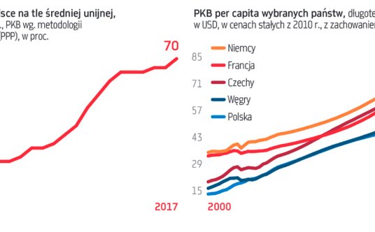 Żaden kraj Europy nie poradził sobie po upadku komunizmu lepiej niż Polska – oceniał Dani Rodrik, znany ekonomista z Harvardu, zachwalając wydaną na początku tego roku książkę Marcina Piątkowskiego „Europe's Growth Champion", diagnozującą źródła tego „cudu nad Wisłą". Dowody na to, że w minionych trzech dekadach Polska odniosła ogromny gospodarczy sukces, można mnożyć. Produkt krajowy brutto w przeliczeniu na mieszkańca, z uwzględnieniem siły nabywczej, zwiększył się między 1990 r. a 2017 r. blisko pięciokrotnie. Niektóre inne kraje regionu Europy Środkowo-Wschodniej mogą się pochwalić podobnym wynikiem, ale Polska rozwijała się wyjątkowo konsekwentnie. W minionych 25 latach jako jedyny kraj Europy ani razu nie doświadczyła recesji. A według wyliczeń analityków z Boston Consulting Group sprzed kilku lat, Polska wyjątkowo dobrze radziła sobie z przekładaniem tego wzrostu gospodarczego na szerzej definiowaną poprawę jakości życia.