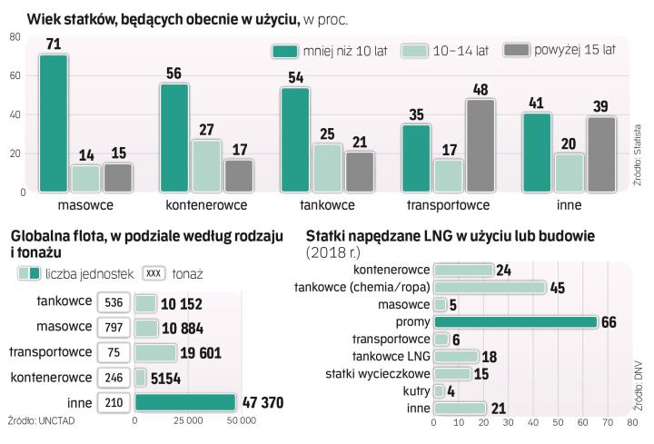 Niewątpliwie dane o branży dobitnie potwierdzają problem. Jak szacuje firma analityczna Statista, dzisiaj 71 proc. masowców, 56 proc. kontenerowców, 54 proc. tankowców, 35 proc. statków z kategorii general cargo oraz 41 proc. innych jednostek pływających po morzach i oceanach ma mniej niż dziesięć lat. Można śmiało oceniać, że znacznie więcej niż połowa dzisiejszej globalnej floty w transporcie morskim wkrótce będzie miała problem z wpłynięciem do portu.