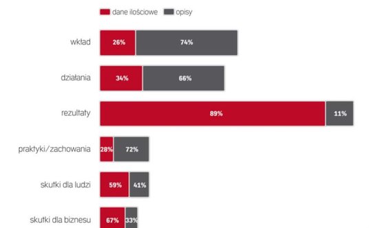 Największą słabością raportów niefinansowych jest brak informacji o efektach i skuteczności podjętych działań, komentarza dotyczącego działań planowanych, a nierzadko też brak skali porównawczej np. w postaci danych za poprzedni okres. Firmy często ograniczają się do opisu status quo na dzień 31 grudnia 2017. Czytamy: „zrealizowano x szkoleń z zakresu BHP i przeciwdziałania dyskryminacji", „różnica w wynagrodzeniach kobiet i mężczyzn wynosi x procent". Jednak bez punktu odniesienia, choćby do innego okresu, informacje te niewiele mówią. Owszem, przeszkolono określoną liczbę pracowników, ale czy zaowocowało to mniejszą liczbą wypadków, czy zaowocowało zmniejszeniem różnic w wynagrodzeniach? Zazwyczaj brak informacji, czy szkolenia przyniosły oczekiwany skutek, jakie działania firma podjęła i zamierza nadal podejmować, by go osiągnąć. Bez danych o efektywności działań skąd firma wie, czy warto je kontynuować w kolejnych okresach? A może czas sięgnąć po inne narzędzia? W raportach informacji o tym, czy firma zadaje sobie pytania na temat efektywności podejmowanych działań i wydatkowanych na nie środków finansowych i dedykowania czasu pracowników, zwykle nie znajdziemy.