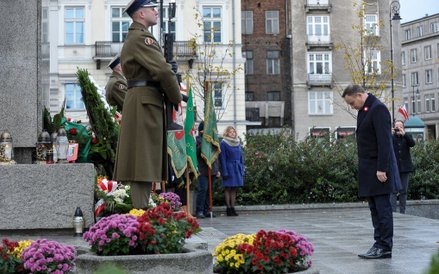 Prezydent Andrzej Duda złożył kwiaty pod pomnikiem Wincentego Witosa, a także pod pomnikiem Romana Dmowskiego i marszałka Piłsudskiego.